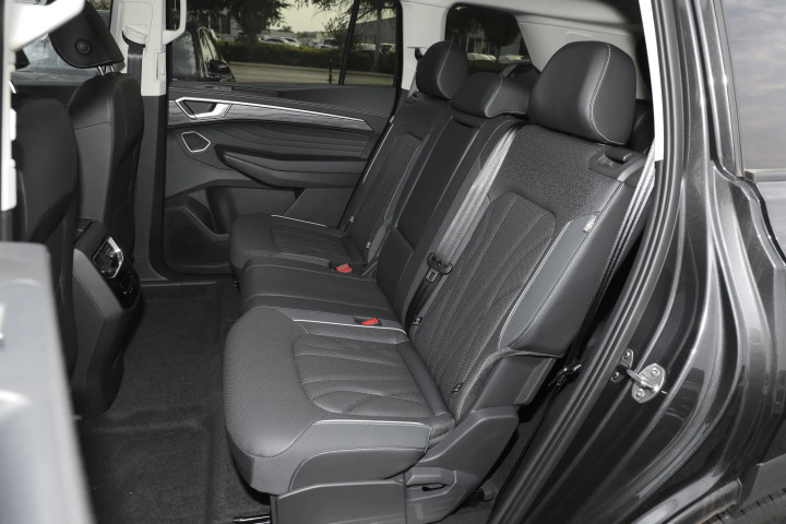 第2排是独立的座椅,中间过道还是比较宽敞的,老人抱着孩子上下车也很方便。座椅可以支持前后移动,还有靠背角度,像我老爸就很喜欢半躺着休息。第3排还是很让我想不到的,我的身高都已经是1米80但坐进去之后腿部还会有将近一拳左右,头部也会有接近一拳。所以并不需要担心会有冷板凳的感觉,周末的时候带着孩子和父母去郊游,两个孩子坐在第3排,也并不会感觉到局促。储物的空间也是比较贴心的,拥有较好的优势,在常规的状态下,后备箱的容积是350L,我测试了一下,放4个20寸的行李箱没有问题,把第3排的座椅放倒之后,后备箱可以扩展到877L,就算在搬家时也可以满足需求,例如可以把折叠床还有婴儿车全部都扔进去。