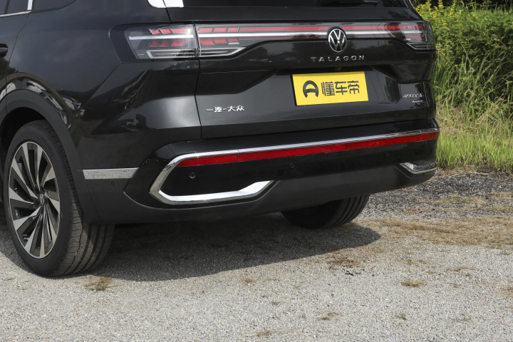 车身的侧面会有铝合金的轮毂,尺寸达到了21英寸。从车身侧面来看,还是很有力量感的,车门下面的镀铬装饰条就会体现出豪华的感觉。让人想不到的就是车尾,这里就有一个贯穿式的尾灯,里面就会藏着家族化x元素,一旦在点亮之后,就好像是展开的光翼一样。和发光的logo就会彼此呼应,那晚上接孩子放学时,确实还是比较有科技感的,可以起到警示的效果。